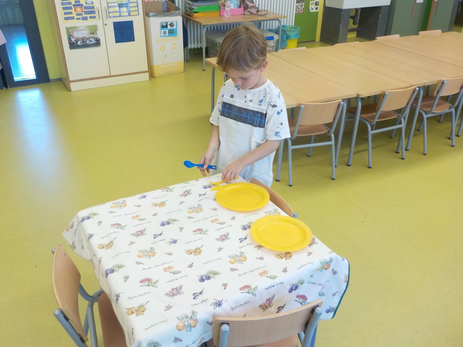 Per tal de treballar conceptes matemàtics, avui hem après a parar la taula per 1, 2, 3 o 4 començals.
